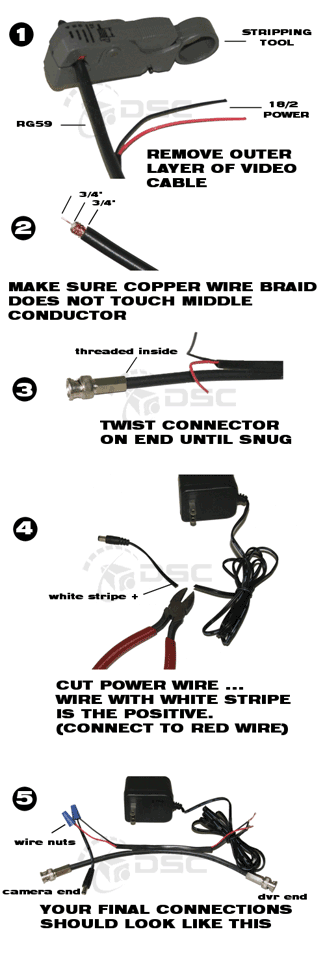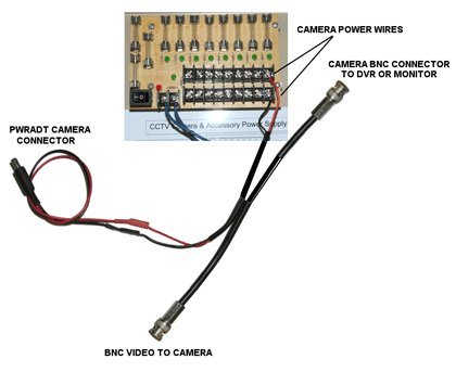 On the DVR end, a preferred method is to use one of our professional power boxes. The power box is usually installed near the DVR. The 2 conductor power wires from the RG59 will connect directly to the power box. This method is recommended because the installation is cleaner and more robust.