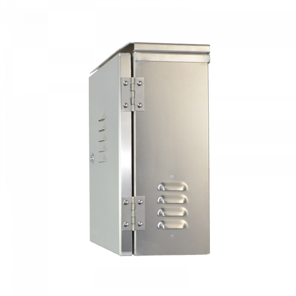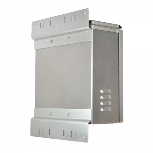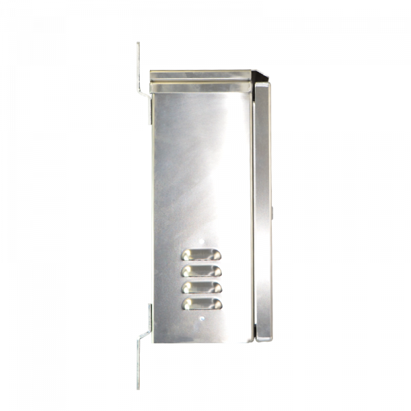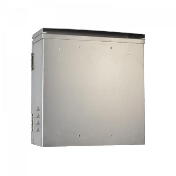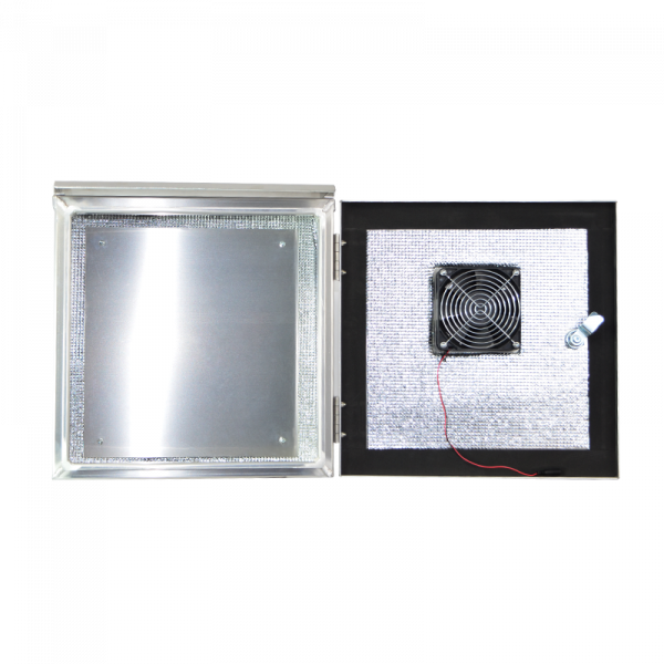 Introducing the AL161606N3 Aluminum Enclosure from Armor Logix. This all new, slimmer 16″ × 16″ × 06″ NEMA 3 Weatherproof Enclosure comes standard with (2) mounting brackets, security lock, sunshade for increased air circulation, mylar insulation for additional temperature control, and adjustable / removable equipment mounting plate. Comes with 1 x automatic fan/thermostat installed.