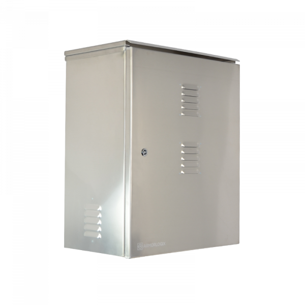 The 27x22x13″ weatherproof enclosure is rated NEMA3 and is constructed using 5052 Marine Grade Aluminum which is designed to withstand corrosive environments such as dirt, grit and salt.
