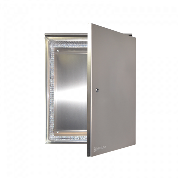 The 27x22x13″ weatherproof enclosure is rated NEMA4 and is constructed using 5052 Marine Grade Aluminum which is designed to withstand corrosive environments such as dirt, grit and salt. The AL272213N4’s weatherproof enclosure comes standard with (2) mounting brackets, security lock, sunshade and adjustable/removable equipment mounting panel.