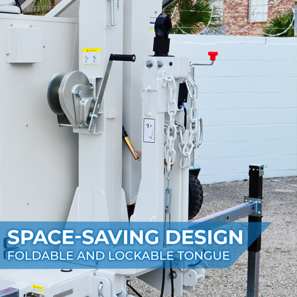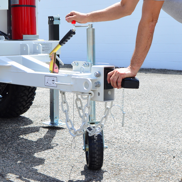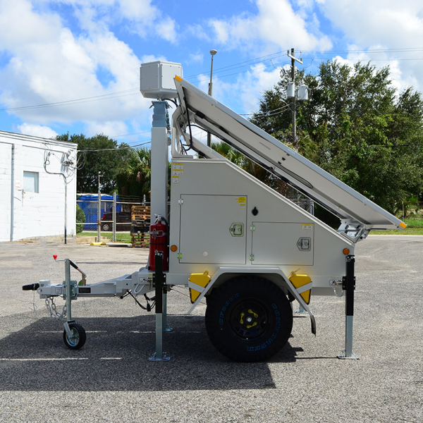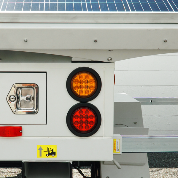 A sturdy hitch takes this solar trailer anywhere your vehicle can go. The solar trailer’s driving height is just over 10’. With trailer pulling experience, this can be deployed by two people in less than 5 minutes, allowing you to get your powered trailer up and running rapidly and easily.