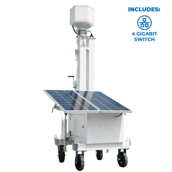 Introducing the AL600-NS4, a versatile solar-powered mobile surveillance cart designed to adapt to your unique needs. This model comes equipped with a 4 Port Network Switch, offering a flexible platform for customers to mount their own equipment, ensuring tailored solutions for diverse challenges. Set up by just one person, the AL600-NS4 can swiftly deploy motion detectors, infrared cameras, and HD cameras, providing comprehensive surveillance in mere minutes. With a towering max height of 18 feet 11 inches, this cart ensures an unobstructed vantage point. And with the added benefit of an optional 4G connection, you can remotely monitor your worksite or event space from any web-enabled device. The AL600-NS4 isn’t just about security; it’s about security tailored to YOU.