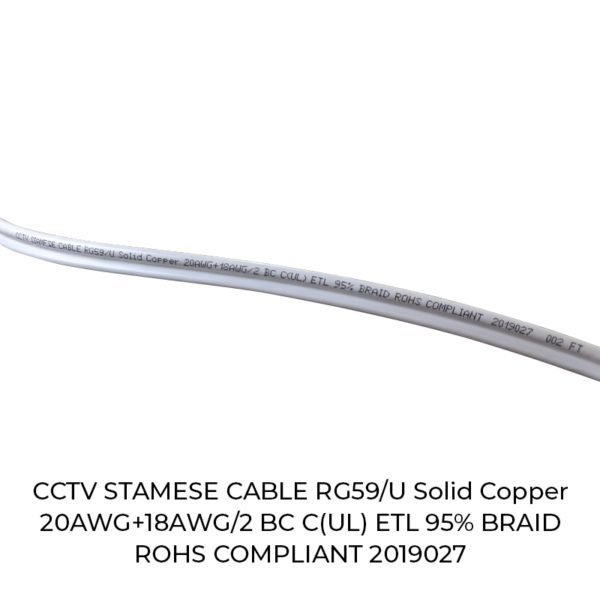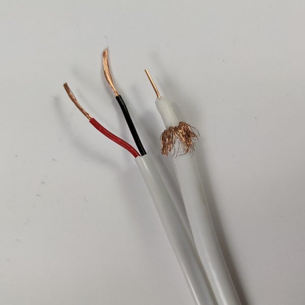 This RG59 Siamese cable combines the video coax cable with 18 gauge 2 conductor (18/2) power wires in the same jacket.