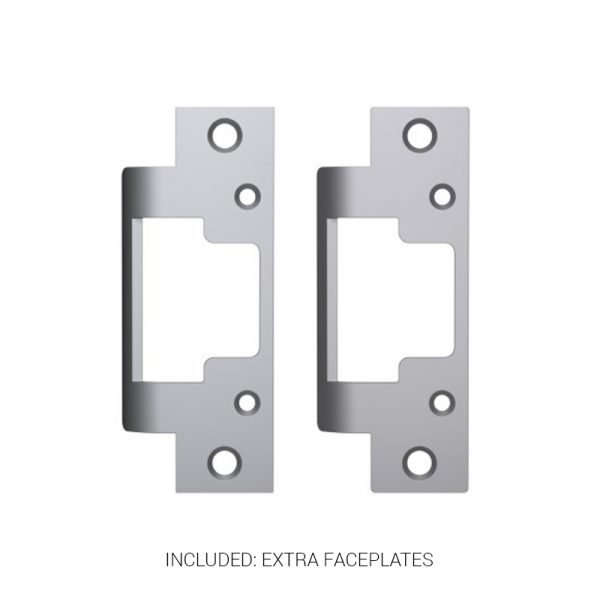 | Faceplate Options | 4-7/8″ x 1-1/4″ for use with cylindrical locksets, or cylindrical locksets in ANSI metal jambs. For use with latchbolts up to 5/8″ throw Includes universal mounting tabs. |