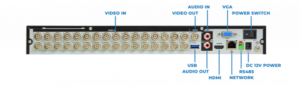 | Analog Camera Input | 32 BNC ports, supports HDCVI / AHD / TVI / CVBS auto-detect |