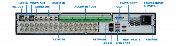 | Analog Camera Input | 32 BNC ports, supports HDCVI / AHD / TVI / CVBS auto-detect |