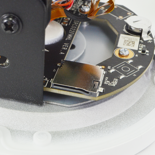 The IP4MIAD-28-NCV when connected to an ANR compatible Network Video Recorder will automatically store video data on the internal memory card when the network is disconnected. After recovery to the network, the NVR automatically retrieves the video data stored on the camera. Memory card not included.