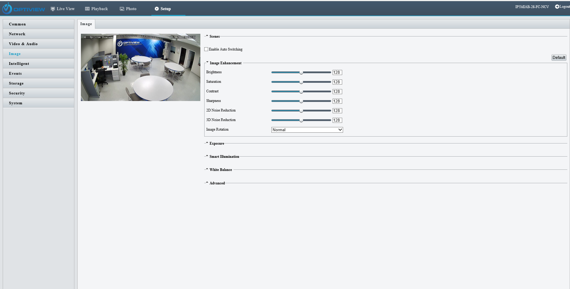 The IP5MIAB-28-FC-NCV is capable of producing a stunningly clear, colorful video with low illuminance enhancement for darker environments at 0.001 LUX. In environments lower than 0.01 Lux, the warm white light LEDs turn on. The IP5MIAB-28-SDA-NCV provides clear video capture in both day and night with high definition video output.