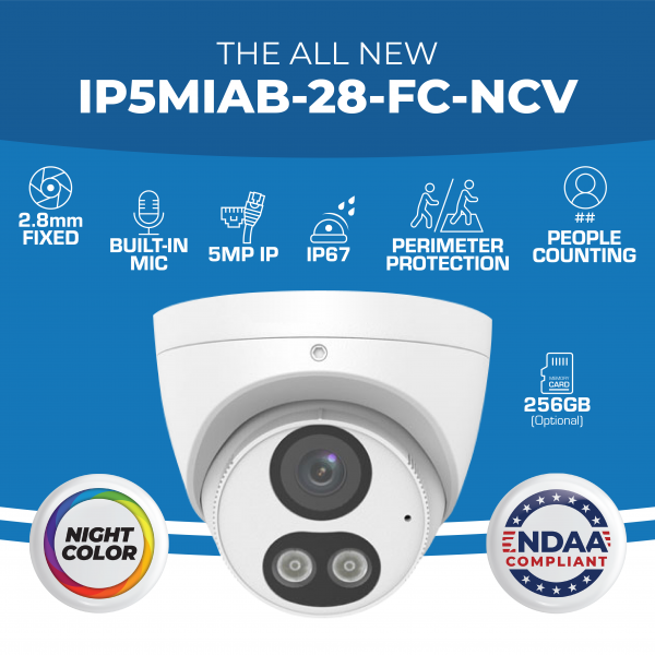 The IP5MIAB-28-SDA-NCV is one of Optiview’s NDAA compliant IP security cameras, and can be paired with any of Optiview’s NCV line of NDAA compliant network video recorders.