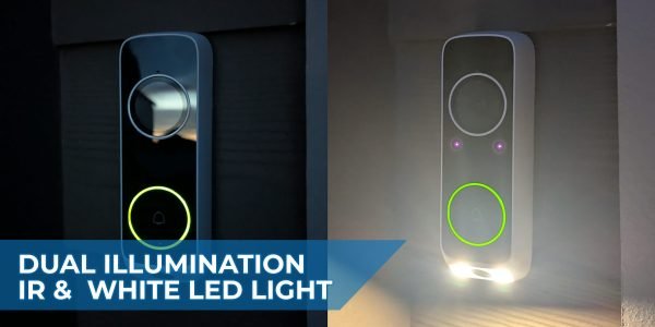 IR allows you to see your entrance or doorstep regardless of darkness. White LED light act as both active deterrence letting porch pirates know they are being watched, but also serves as a courtesy light so you don’t fumble around with your keys in the dark.