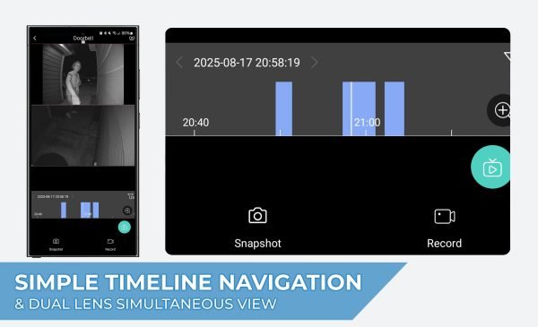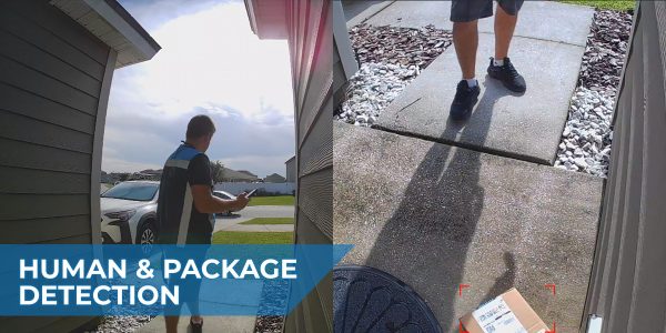 Prevent package theft with dual lens capturing visitors & deliveries.
