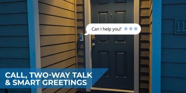Quick one touch call button allows for two-way communication from the NCV app with onboard mic and speaker. When a package is detected on your porch, the doorbell automatically engages visitors to help deter theft by porch pirates. If the doorbell is pressed and unanswered, an automated response is triggered after a set interval providing a positive visitor experience.