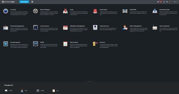 The Optiview VMX is a powerful, all-in-one video surveillance management software for system scalability and reliability. The Optiview VMX supports up to 512 network cameras and 256 Video Intercom devices, with the ability to integrate multiple access or video intercom devices.