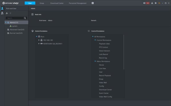 The software manages the devices and the user accounts for an entire organization. Operators can assign different camera ranges, active use periods, and business roles for each user. The server also supports different schemes for various events, including IVS, to record and view all event history information.