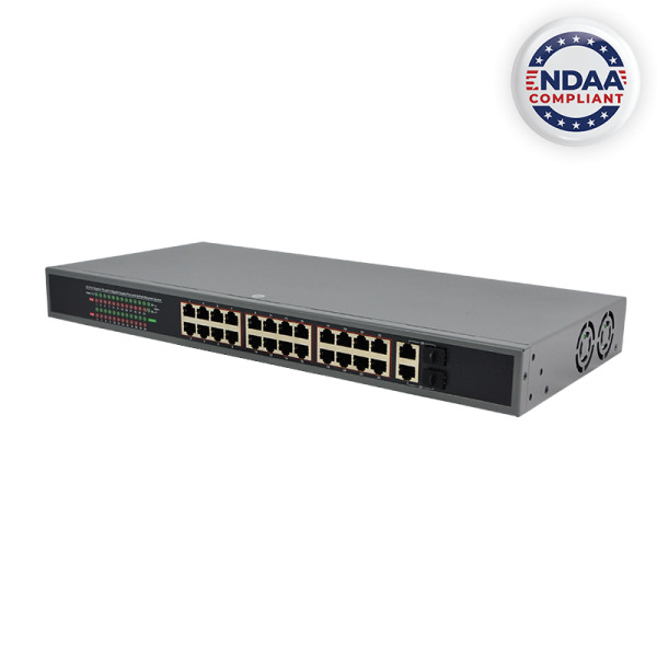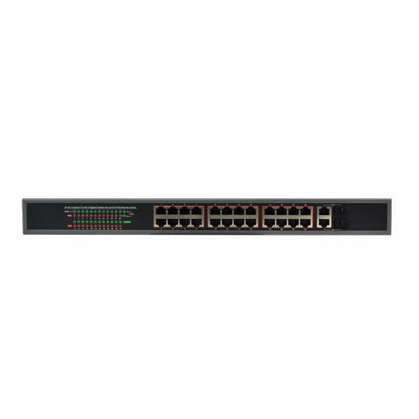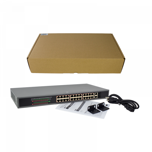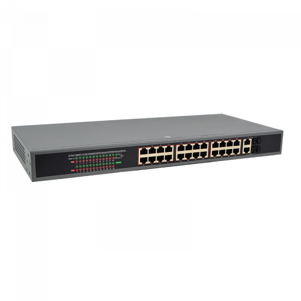 The OVPOE24X-400-2GC PoE switch provides power for regular IP cameras, and IP PTZ cameras, as well as other data and infrastructure. 10/100/1000Gbps speeds ensure high definition video quality.