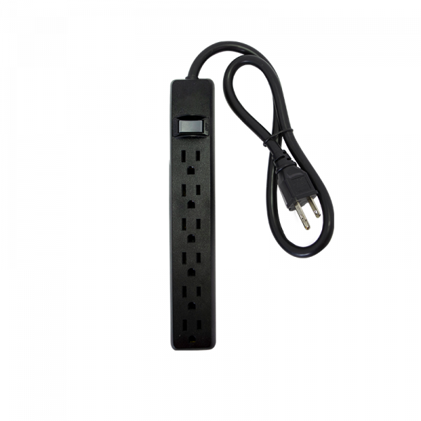 Optiview’s 6x outlet power strip with 2ft cord is wall mountable. The PS6-B is UL listed and is grounded with an integrated circuit breaker. This model comes in black.