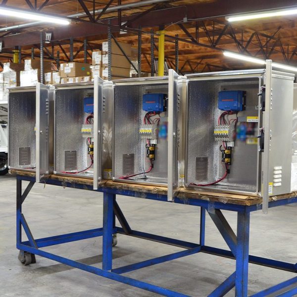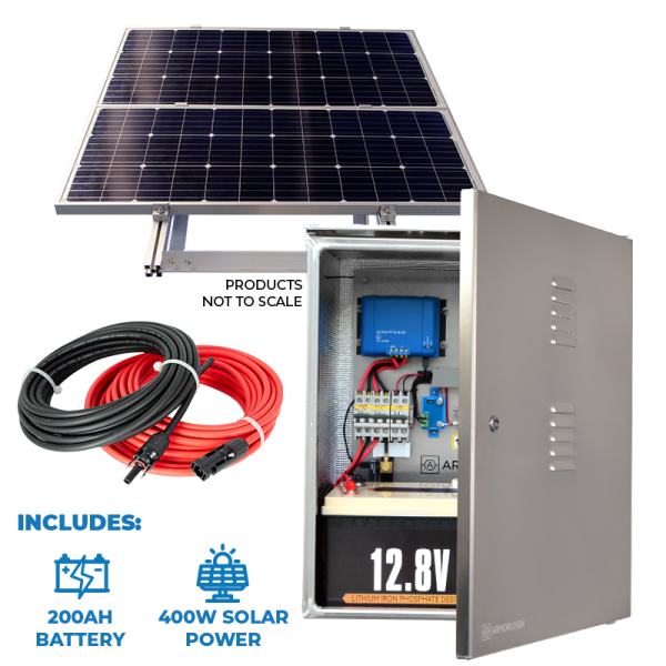 Rugged Power Core: ArmorLogix AL272213 NEMA 3 marine grade 5052 aluminum enclosure houses the 100AH lithium phosphate solar battery, control panel, PoE switch, and is where all the connections terminate.