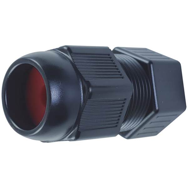 Weatherproof gland for RJ45 allows networking cables to run in and out of the enclosure without the risk of water getting inside the enclosure. Black PVC.