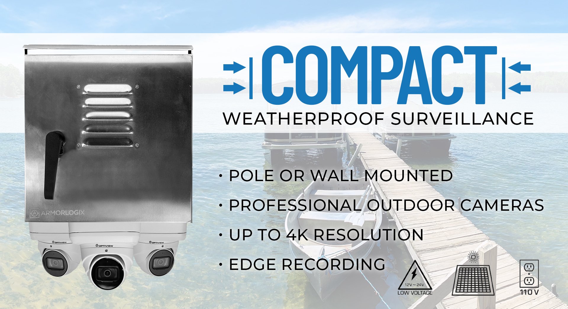 Optiview has designed several compact surveillance solutions using a 12 x 12 x 11″ NEMA 3 weatherproof aluminum enclosure and outdoor rated weatherproof IP cameras with edge recording, recording right to the camera and Micro SD cards. These systems can be powered off of low voltage, 110V, or solar power. Enable remote access with LAN, WAN, or Cellular and access anytime with the Optiview VMS or Mobile App.