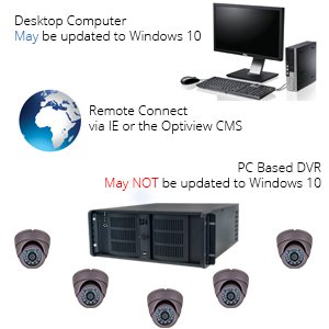 As of February 2016, Microsoft is forcing machines to download and prompting users to install the new version of Windows (Windows 10). Unfortunately, if Windows 10 is installed on one of the affected devices below, the Optiview CMS will not work and will not display your cameras. You can still view your cameras remotely using Internet Explorer (IE), but you cannot use the CMS client to view and manage your cameras.